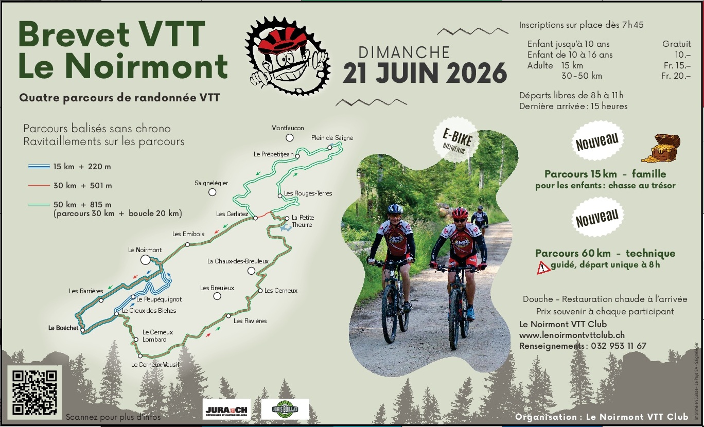 17ème Brevet VTT Franc-Montagnard, dimanche 21 juin 2026